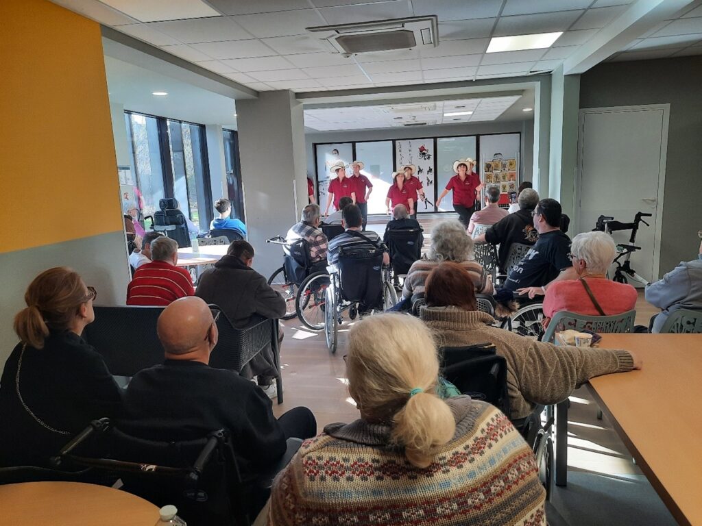 Une douzaine de danseuses et danseurs venu spécialement pour la saint-Valentin de le Doulieu offrir un spectacle de danse country aux patients du centre l’espoir.