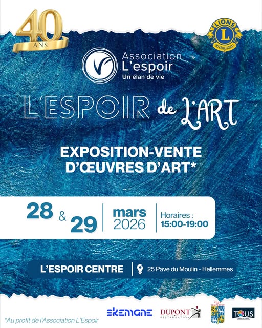 #LespoirDeLArt #ArtSolidaire #CentreLEspoir #ExpositionVente #Solidarité #ArtEtSanté #40Ans #LionsClub