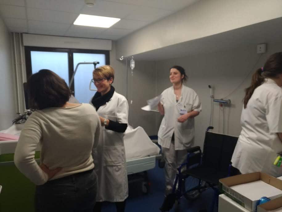 La sécurité dans la chambre d’un patient « mannequin » nommé Truc MUCHE. Mardi 27/11/2018, il s’agissait pour les professionnels de détecter dans cette « chambre des erreurs » les 10 risques pour le patient.